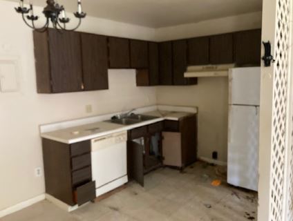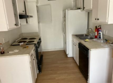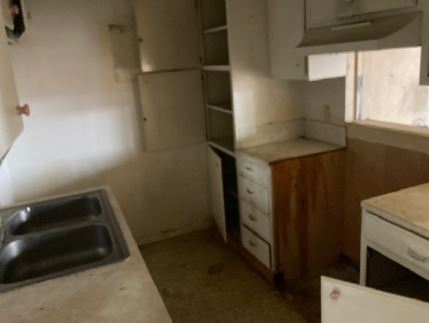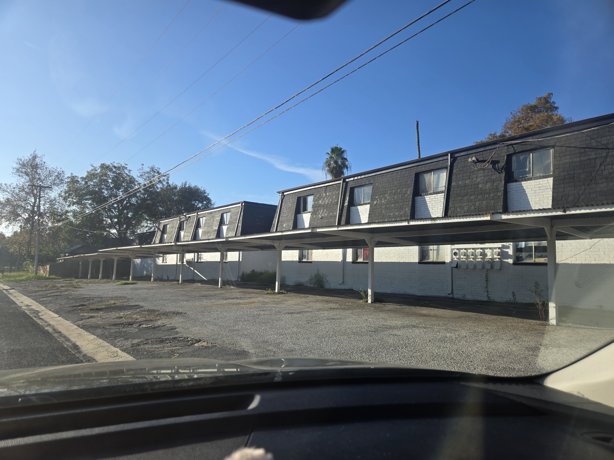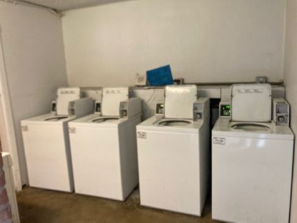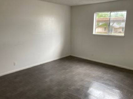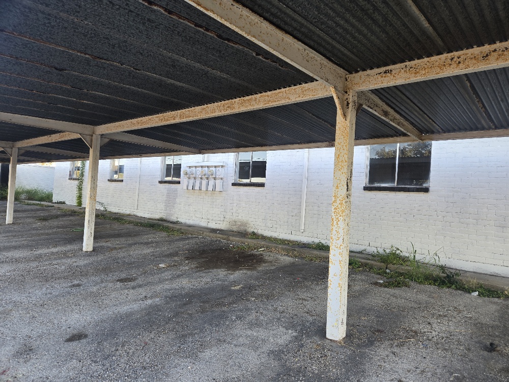 different sizes of two-bedroom/one-bathroom units. There are no garages and the on-site parking is a mixture of covered spaces and open spaces with an asphalt surface.